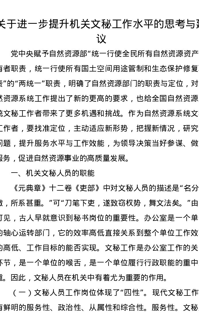 调研报告:关于进一步提升机关文秘工作水平的思考与建议