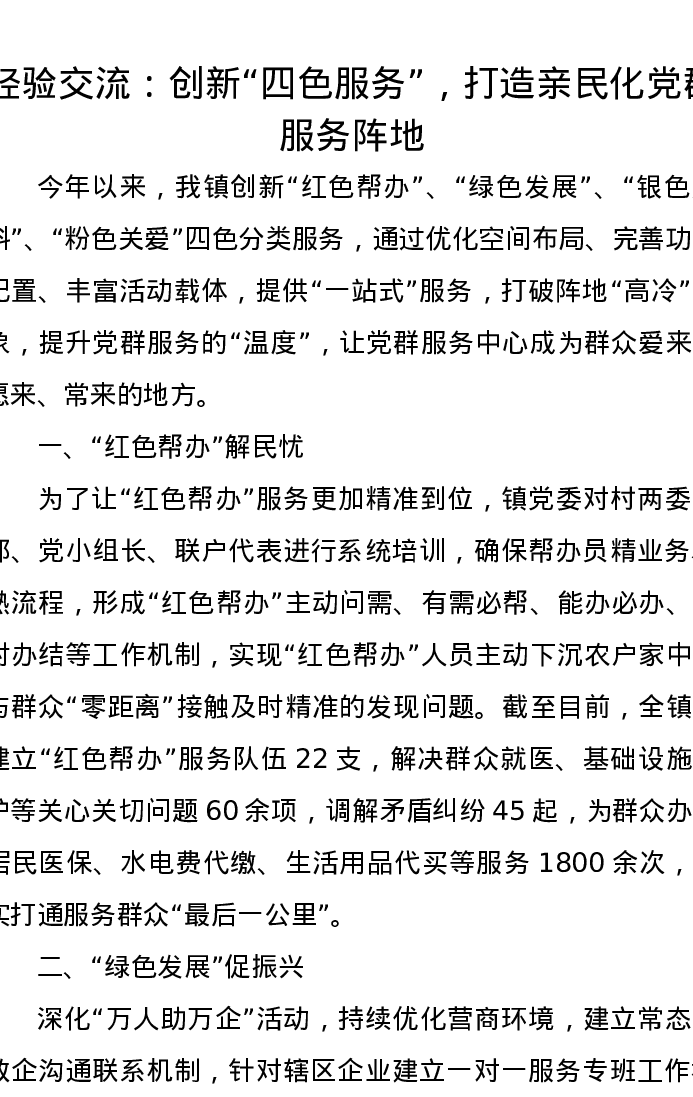 经验交流:创新“四色服务”,打造亲民化党群服务阵地