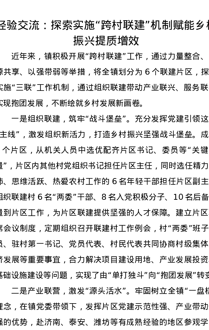 经验交流:探索实施“跨村联建”机制赋能乡村振兴提质增效