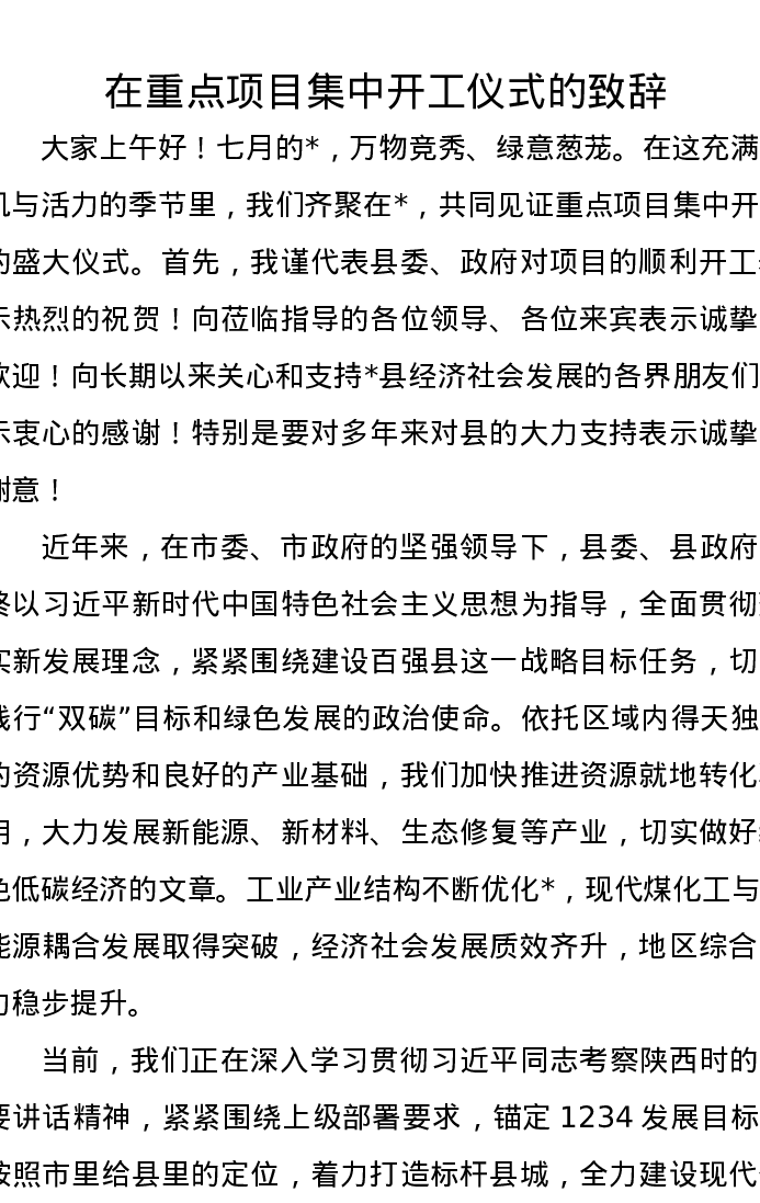 在重点项目集中开工仪式的致辞