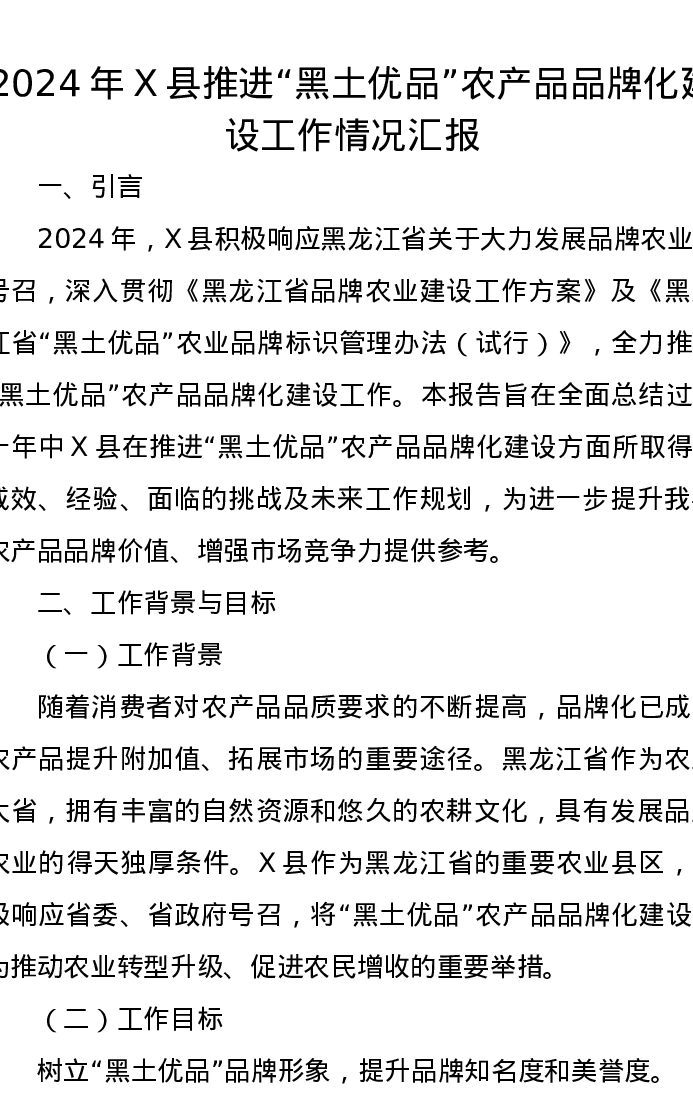 2024年X县推进“黑土优品”农产品品牌化建设工作情况汇报
