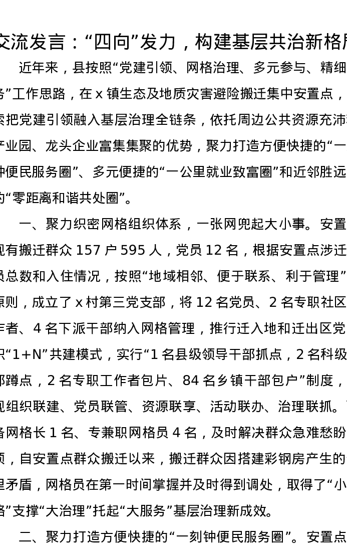 交流发言:“四向”发力,构建基层共治新格局