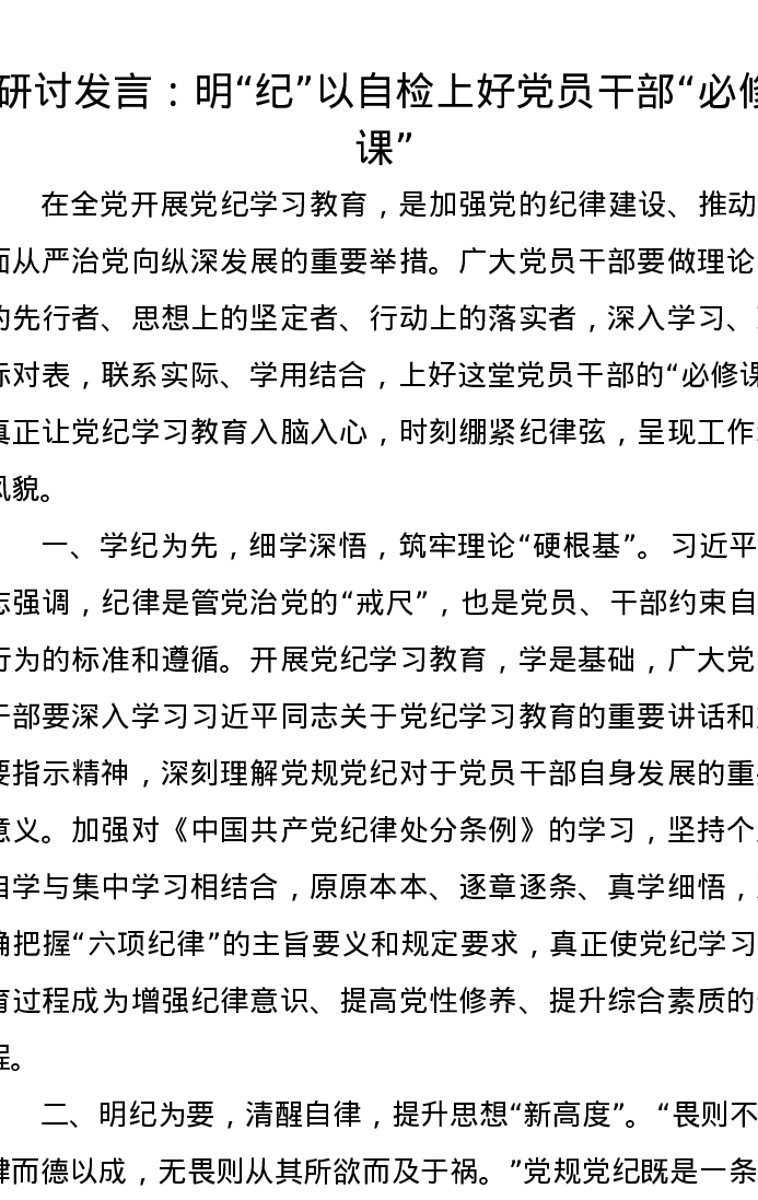 研讨发言:明“纪”以自检上好党员干部“必修课”
