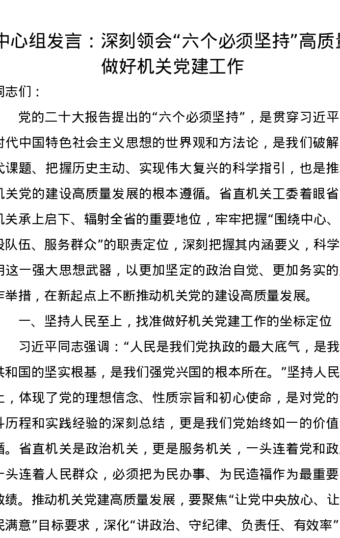 中心组发言:深刻领会“六个必须坚持”高质量做好机关党建工作