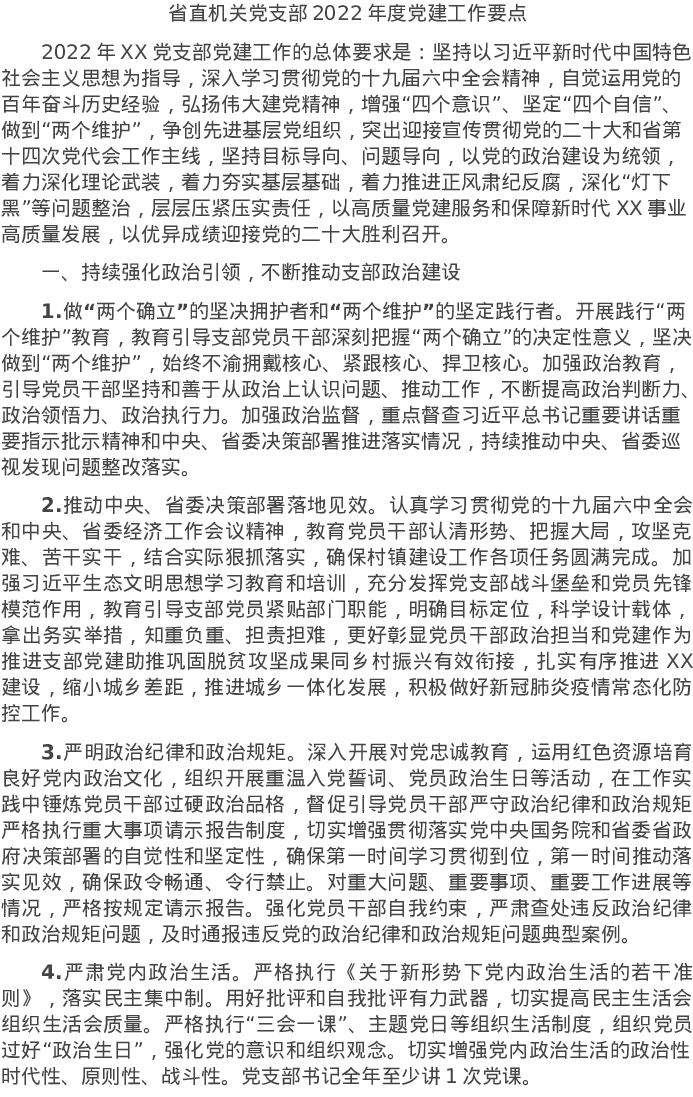 20220321省直机关党支部2022年度党建工作要点