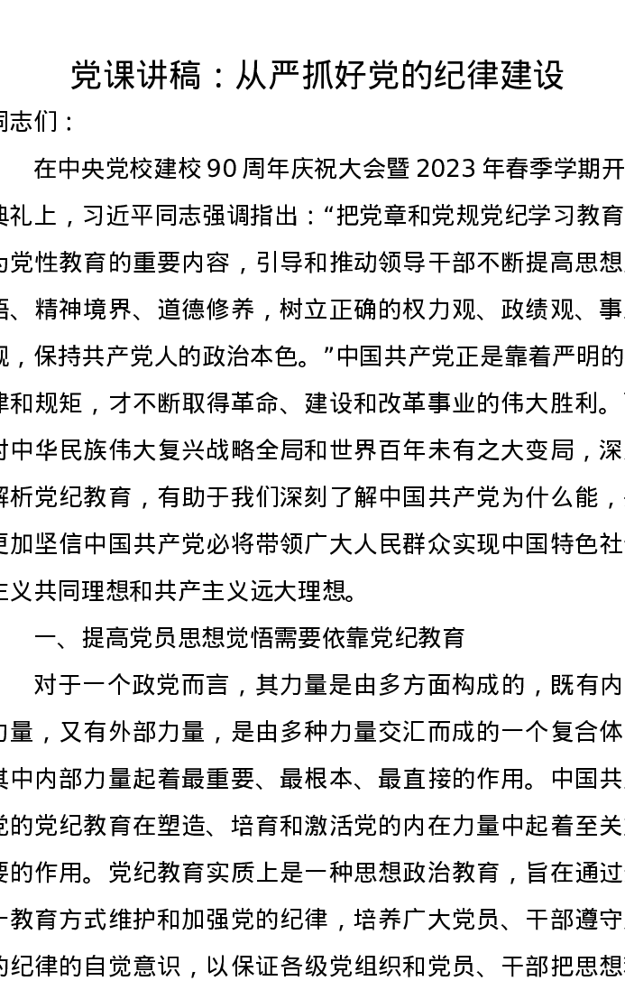 党课讲稿:从严抓好党的纪律建设