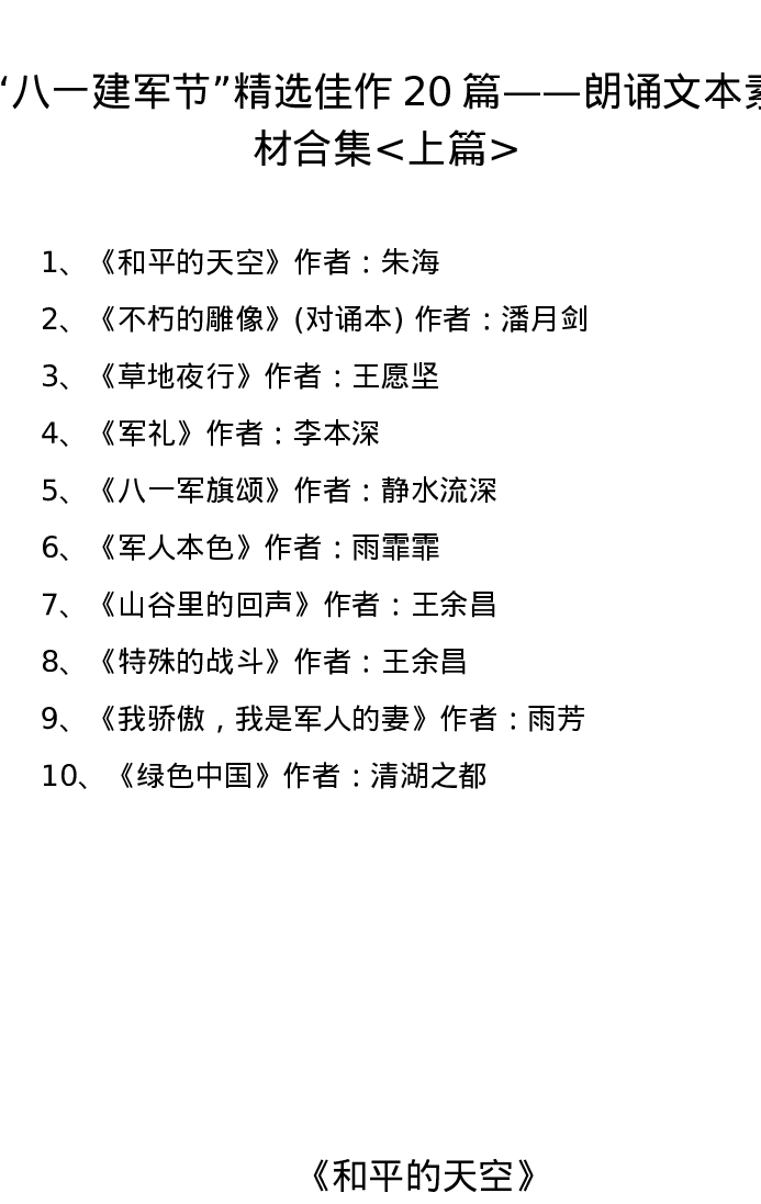 “八一”建军节精选佳作20篇——朗诵文本素材合集上10篇