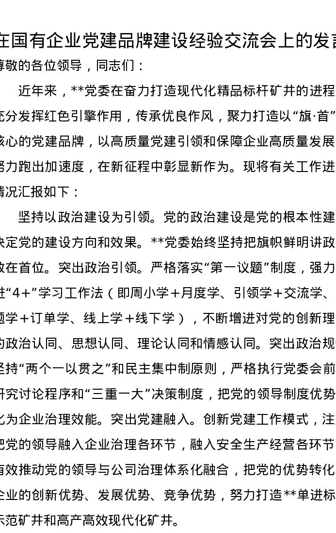 在国有企业党建品牌建设经验交流会上的发言