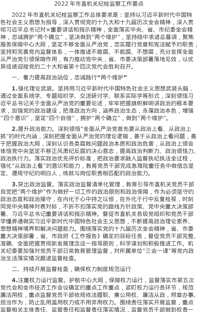 20220330-2022年市直机关纪检监察工作要点