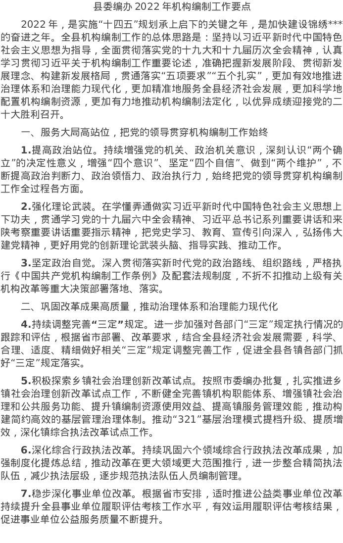 20220330县委编办2022年机构编制工作要点