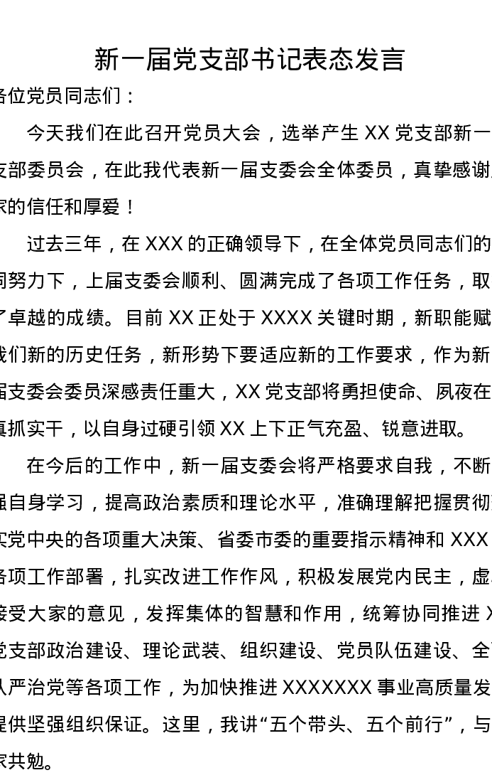 新一届党支部书记表态发言