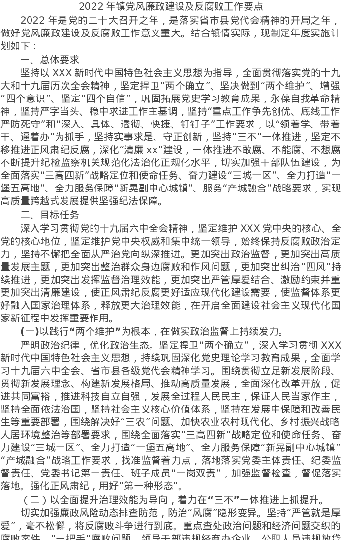 20220406-2022年镇党风廉政建设及反腐败工作要点