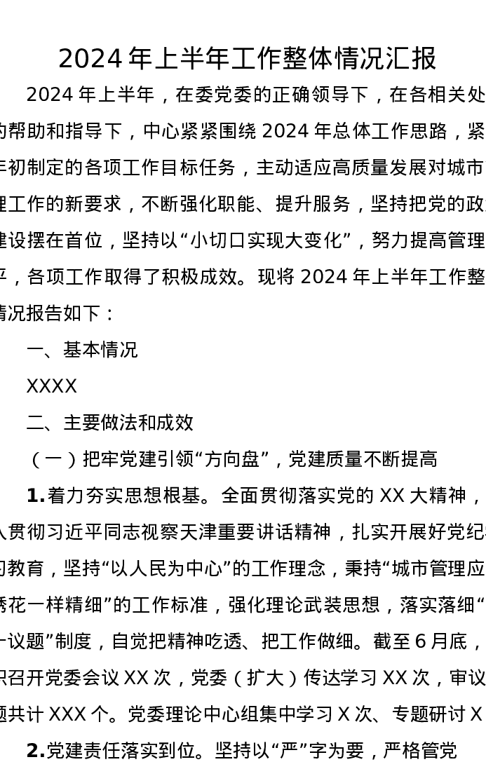 2024年上半年工作整体情况汇报