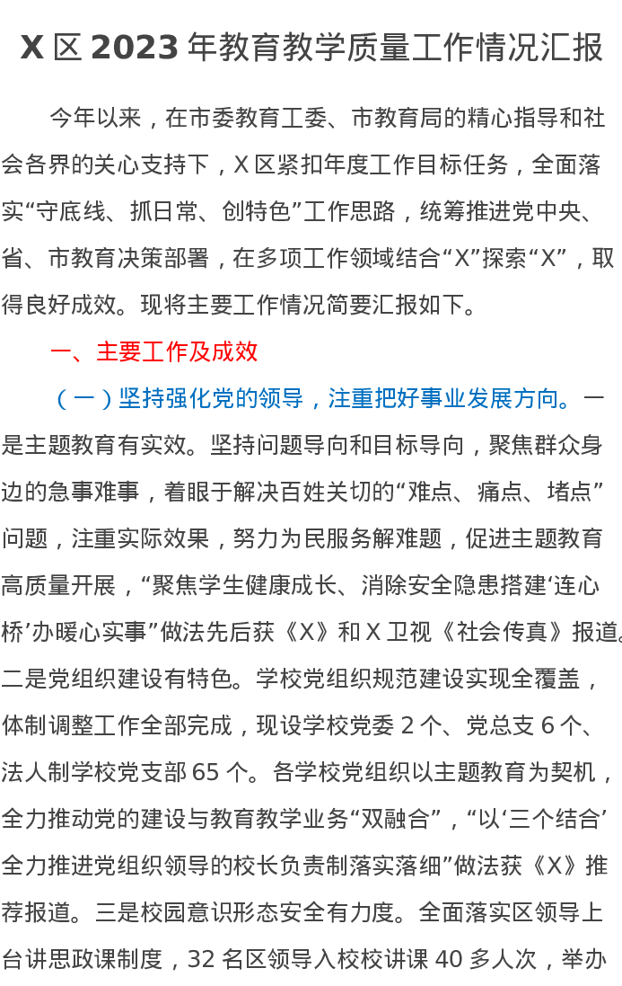 X区2023年教育教学质量工作情况汇报