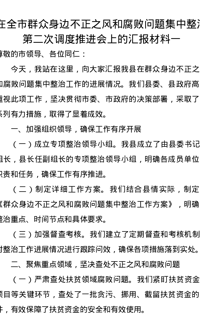 汇编:在全市群众身边不正之风和腐败问题集中整治第二次调度推进会上的汇报材料4篇