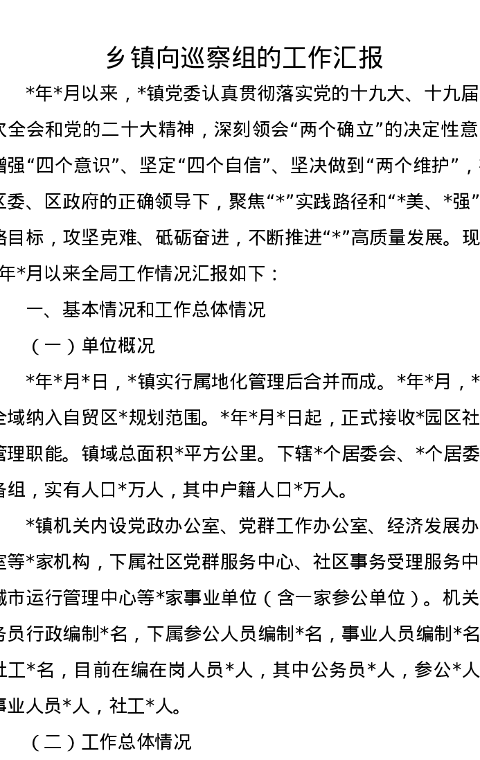 乡镇向巡察组的工作汇报
