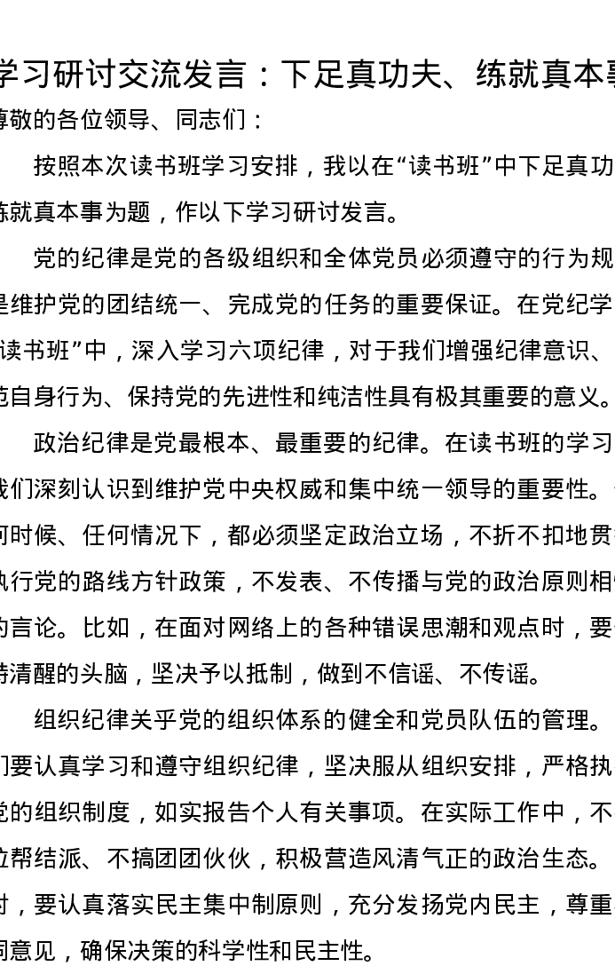 学习研讨交流发言:下足真功夫、练就真本事