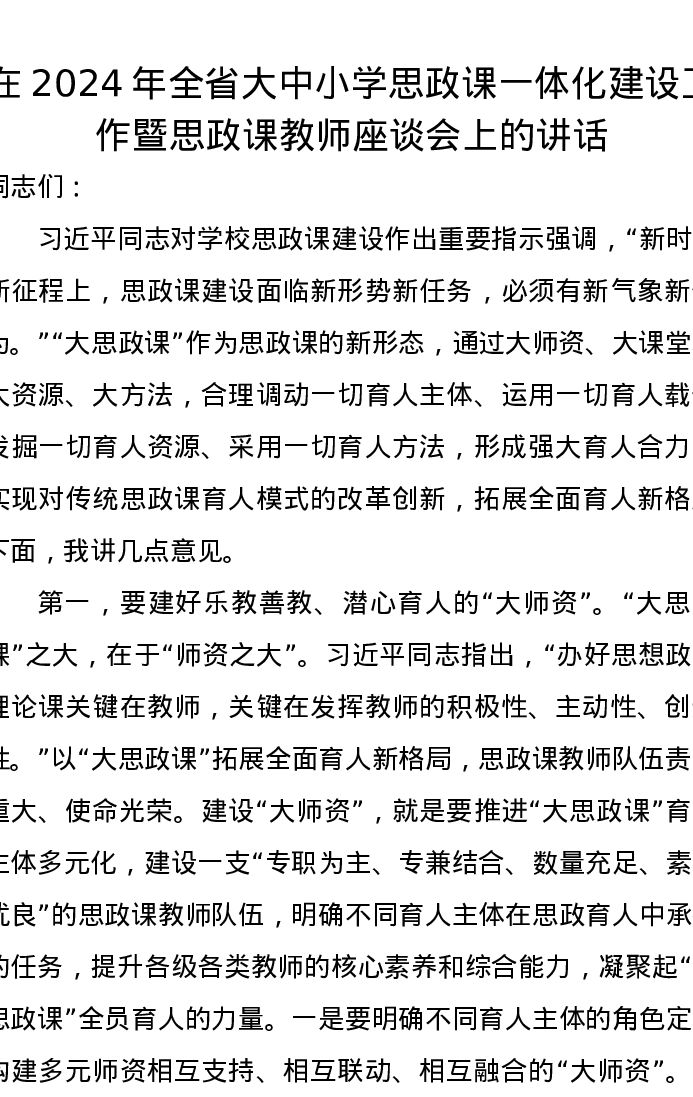 在2024年全省大中小学思政课一体化建设工作暨思政课教师座谈会上的讲话