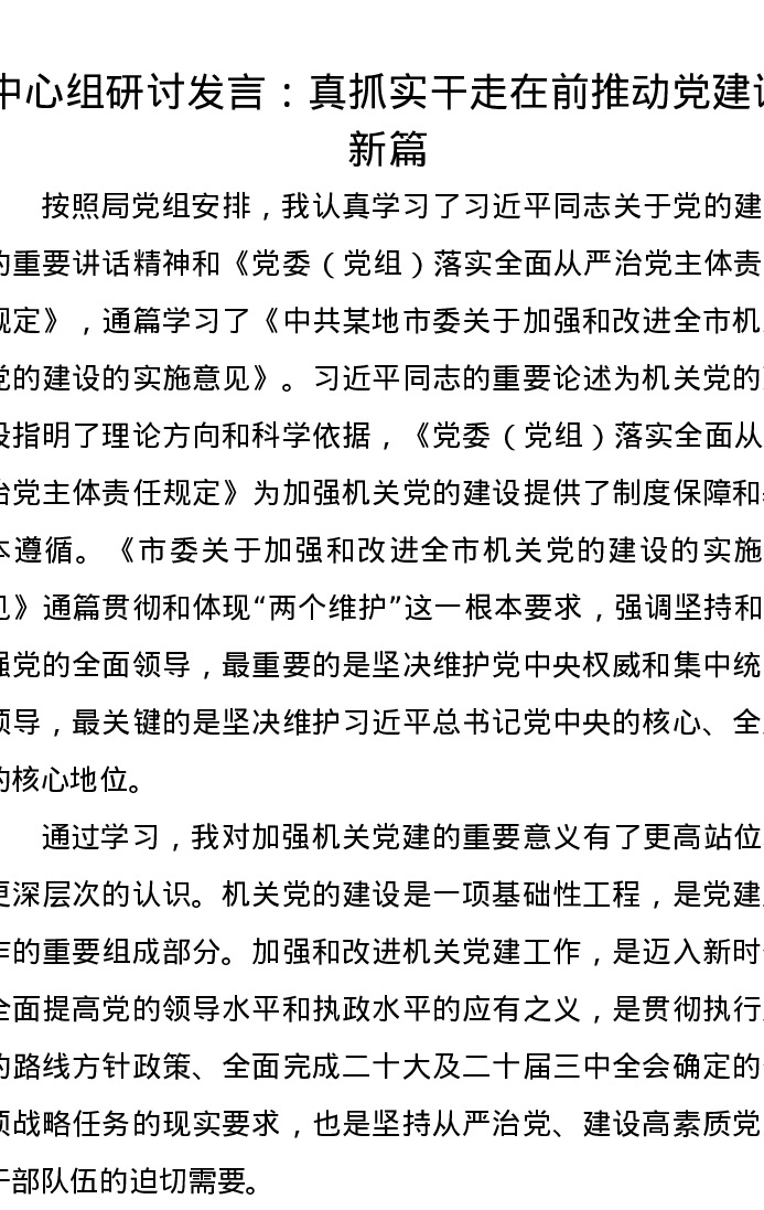 中心组研讨发言:真抓实干走在前推动党建谱新篇