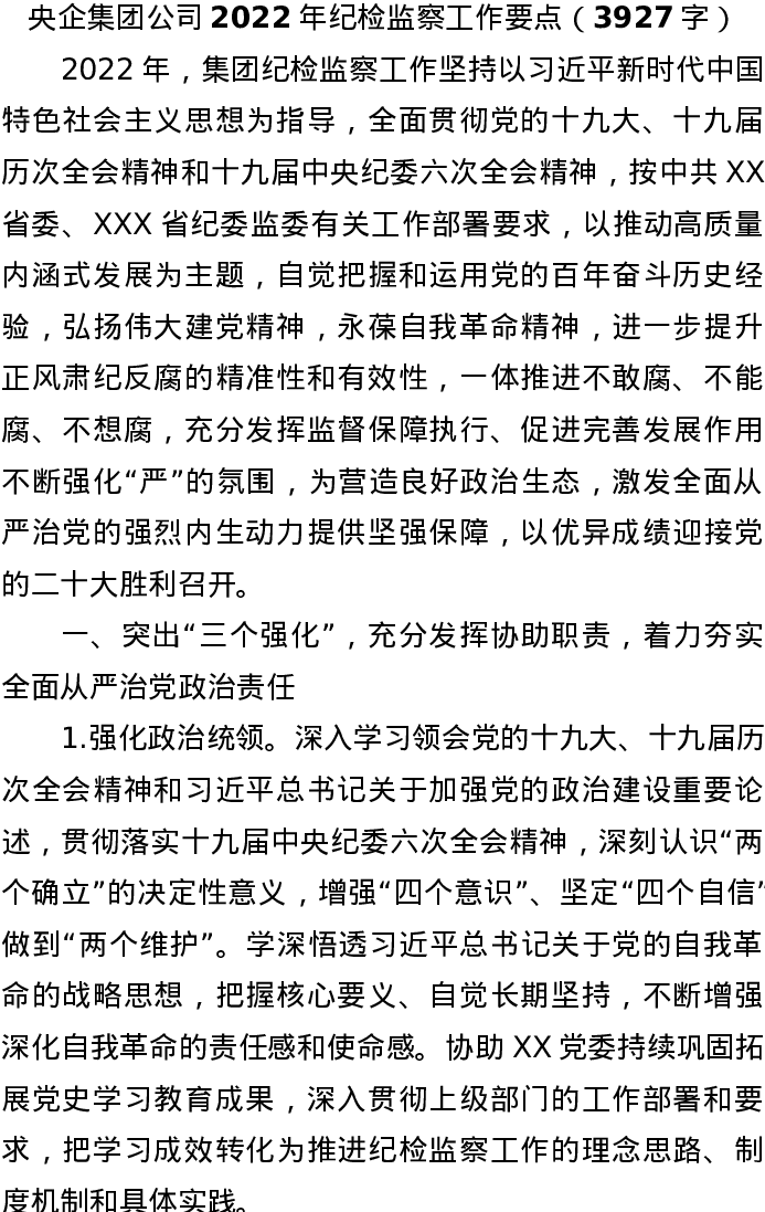 20220425央企集团公司2022年纪检监察工作要点(3927字)