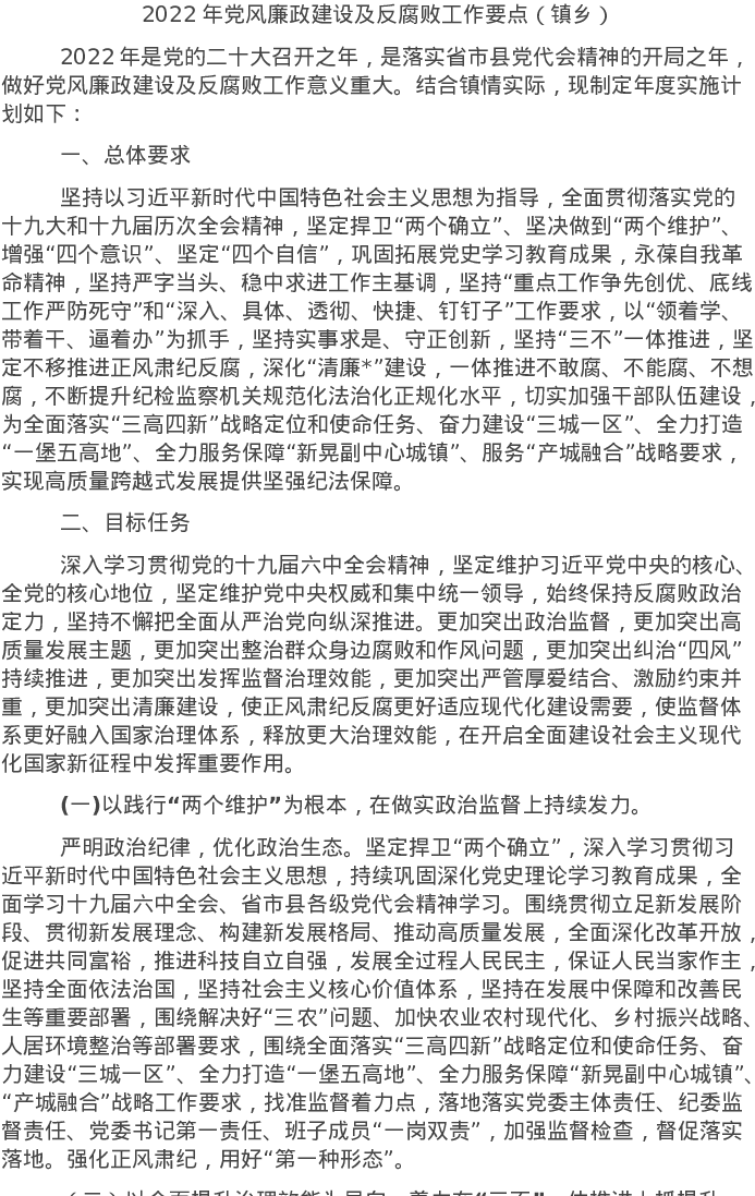 20220426-2022年党风廉政建设及反腐败工作要点(镇乡)