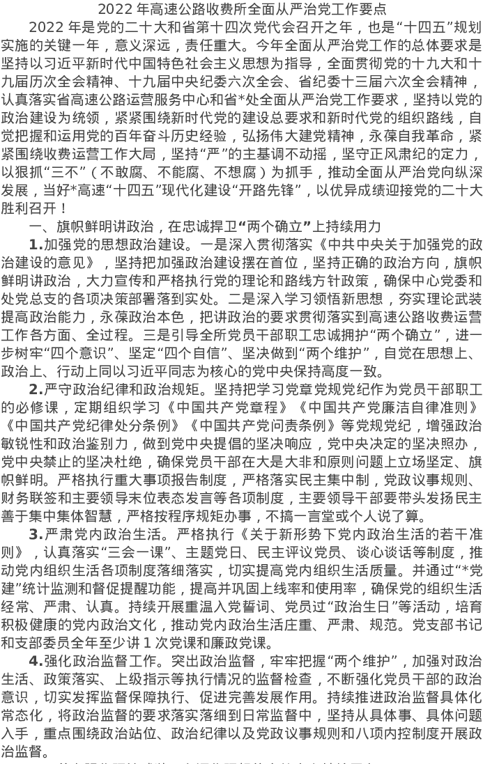 20220503-2022年高速公路收费所全面从严治党工作要点