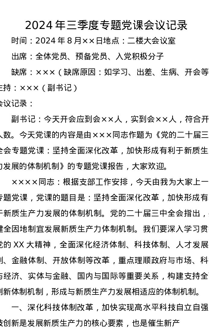 2024年三季度专题党课会议记录