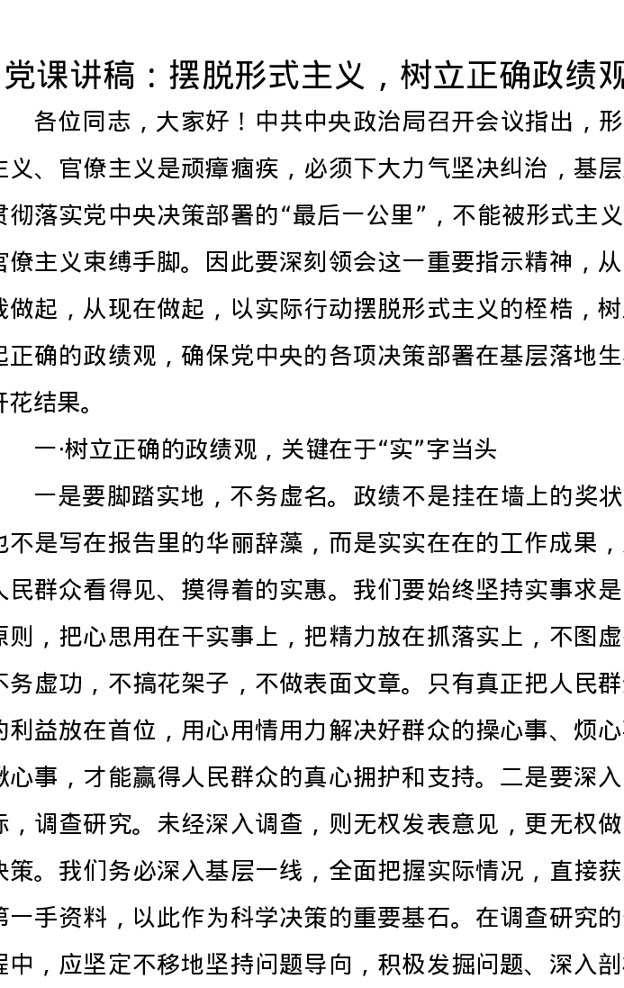 党课讲稿:摆脱形式主义,树立正确政绩观