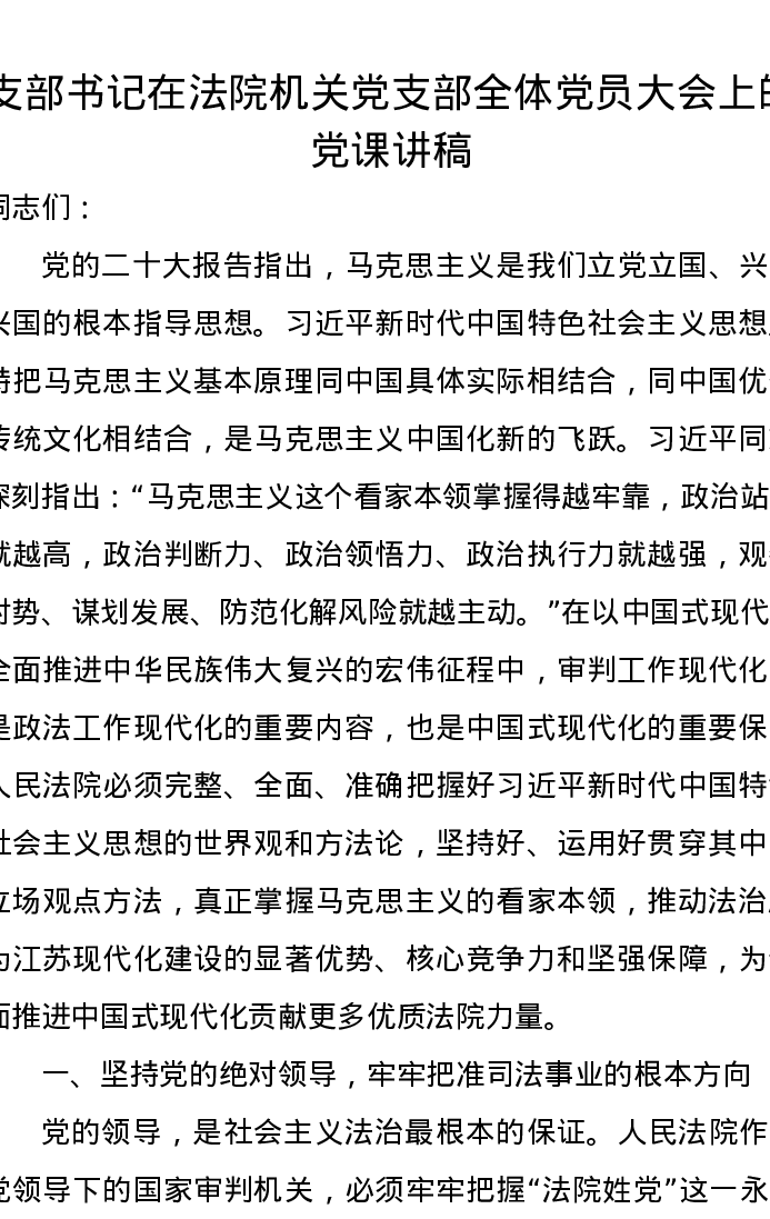 支部书记在法院机关党支部全体党员大会上的党课讲稿