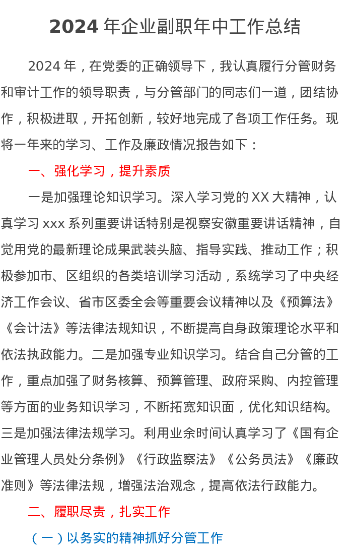 2024年企业副职年中工作总结