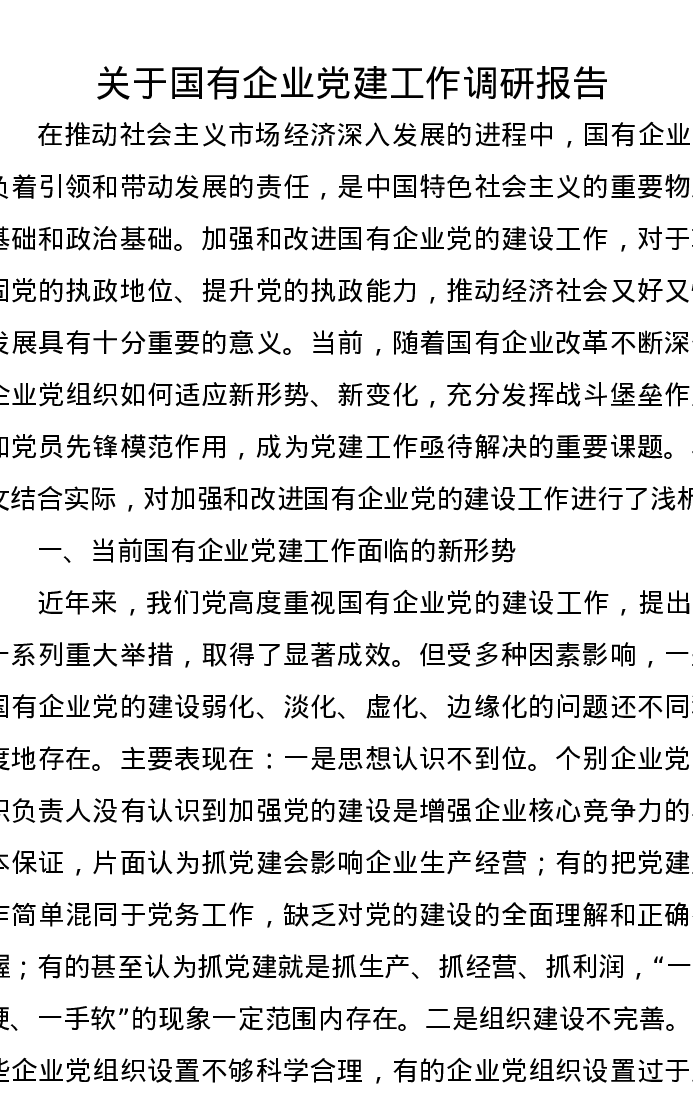 关于国有企业党建工作调研报告