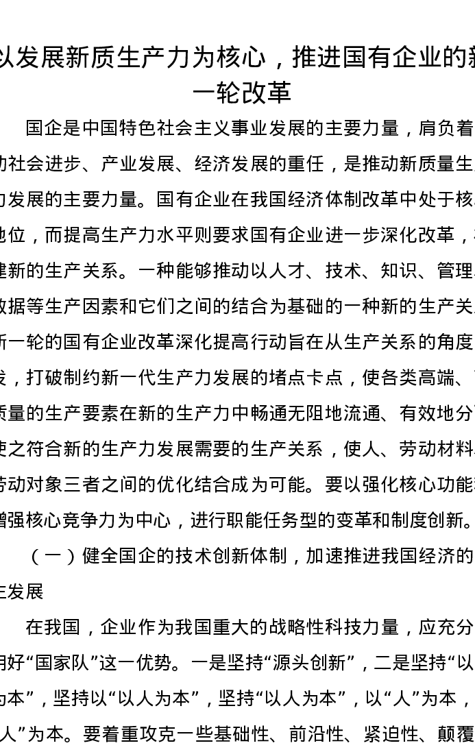 讲话:以发展新质生产力为核心,推进国有企业的新一轮改革