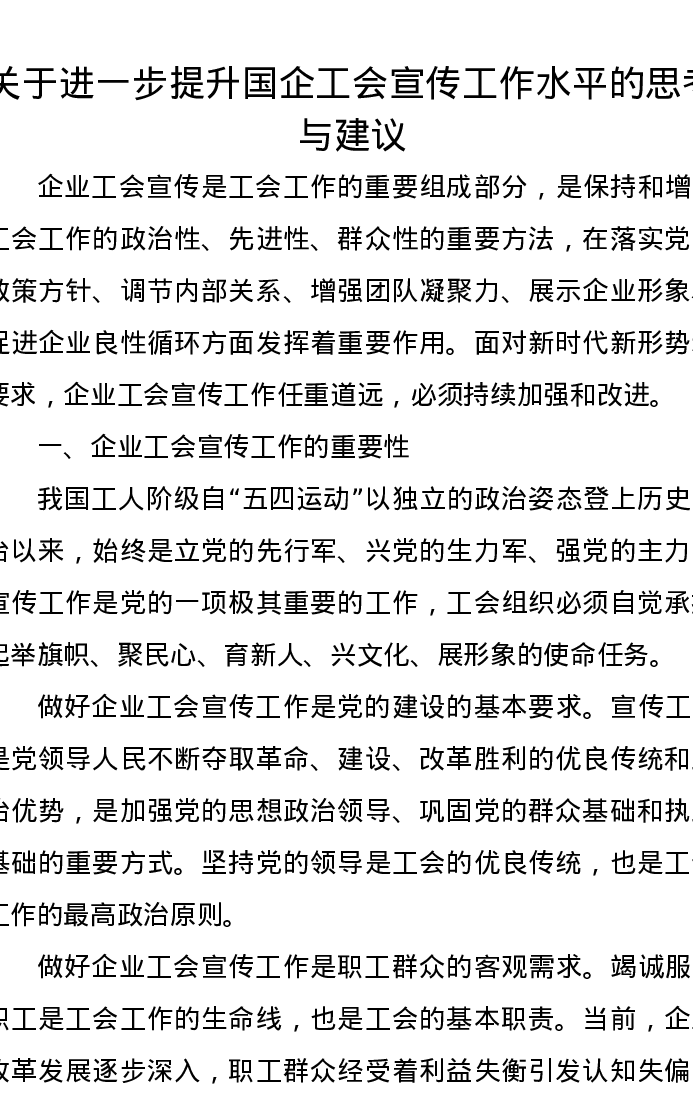 调研报告:关于进一步提升国企工会宣传工作水平的思考与建议