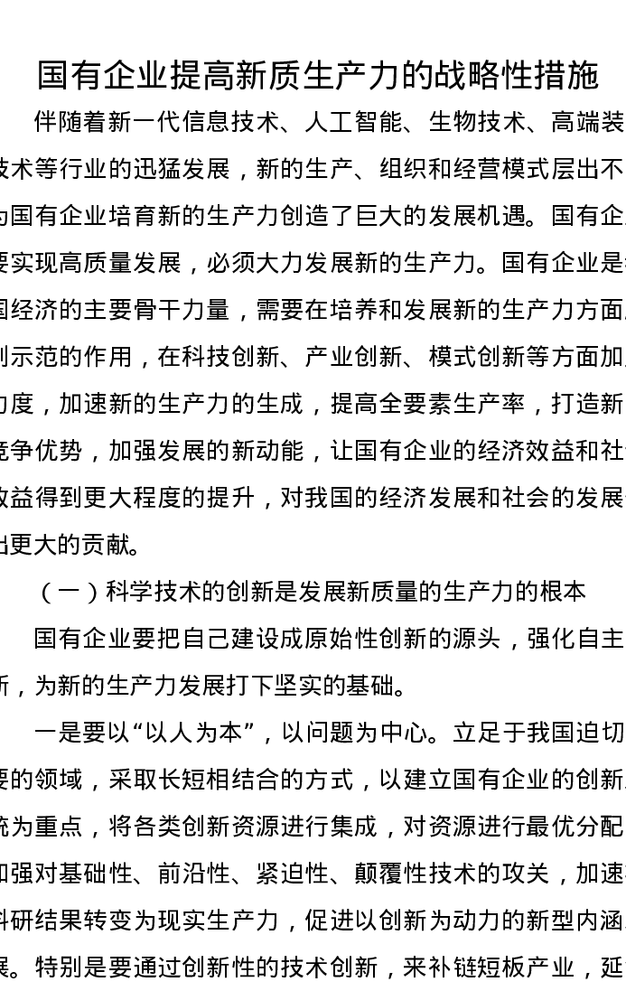 调研报告:国有企业提高新质生产力的战略性措施