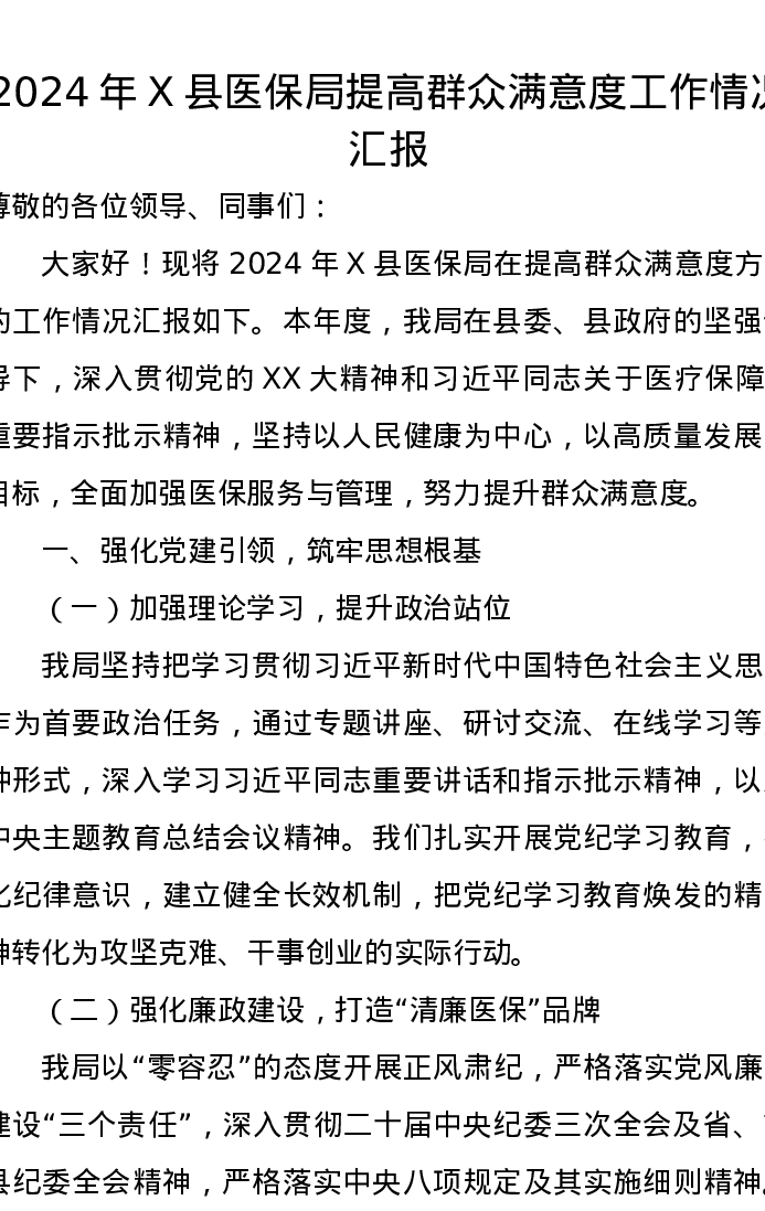 2024年X县医保局提高群众满意度工作情况汇报
