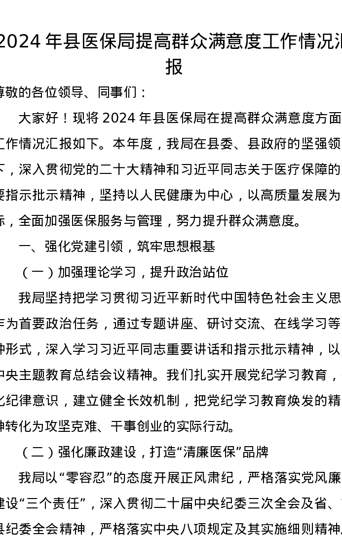 2024年县医保局提高群众满意度工作情况汇报