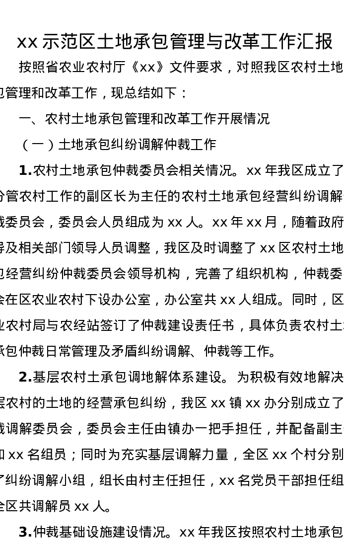 xx示范区土地承包管理与改革工作汇报