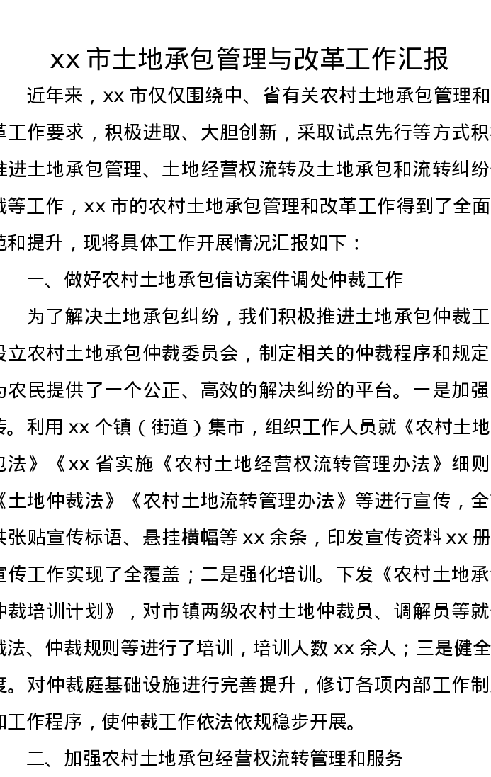 xx市土地承包管理与改革工作汇报