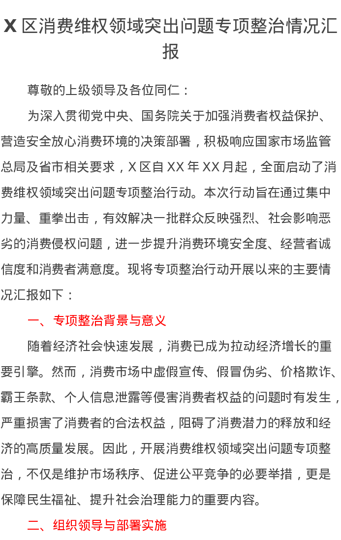 X区消费维权领域突出问题专项整治情况汇报