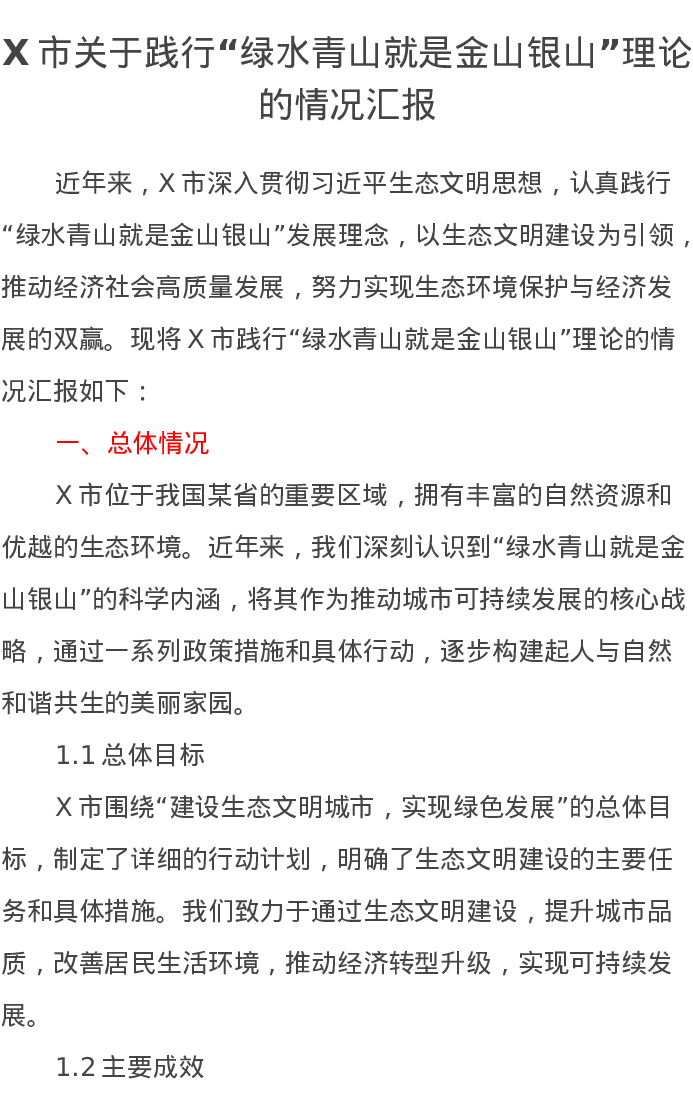 X市关于践行“绿水青山就是金山银山”理论的情况汇报