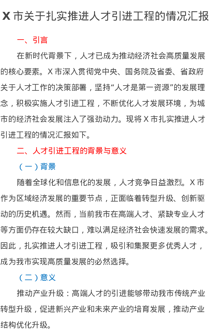 X市关于扎实推进人才引进工程的情况汇报