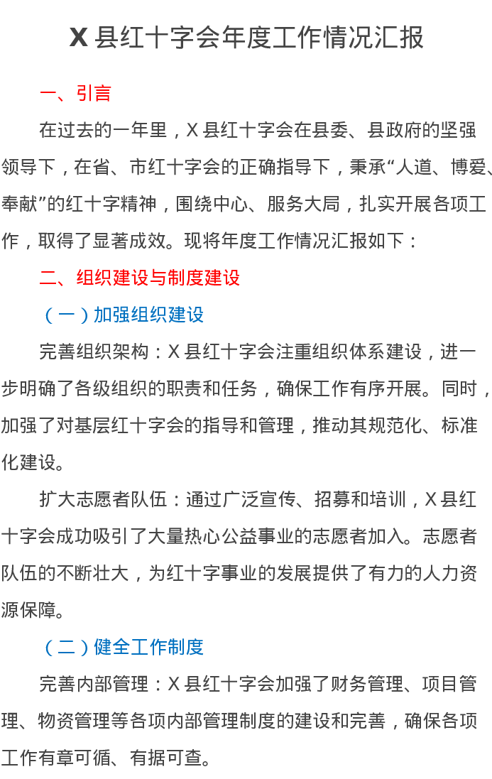 X县红十字会年度工作情况汇报