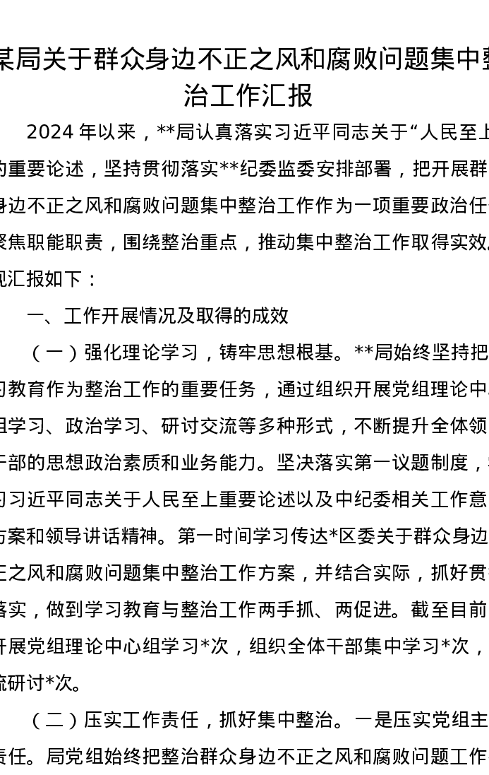 某局关于群众身边不正之风和腐败问题集中整治工作汇报
