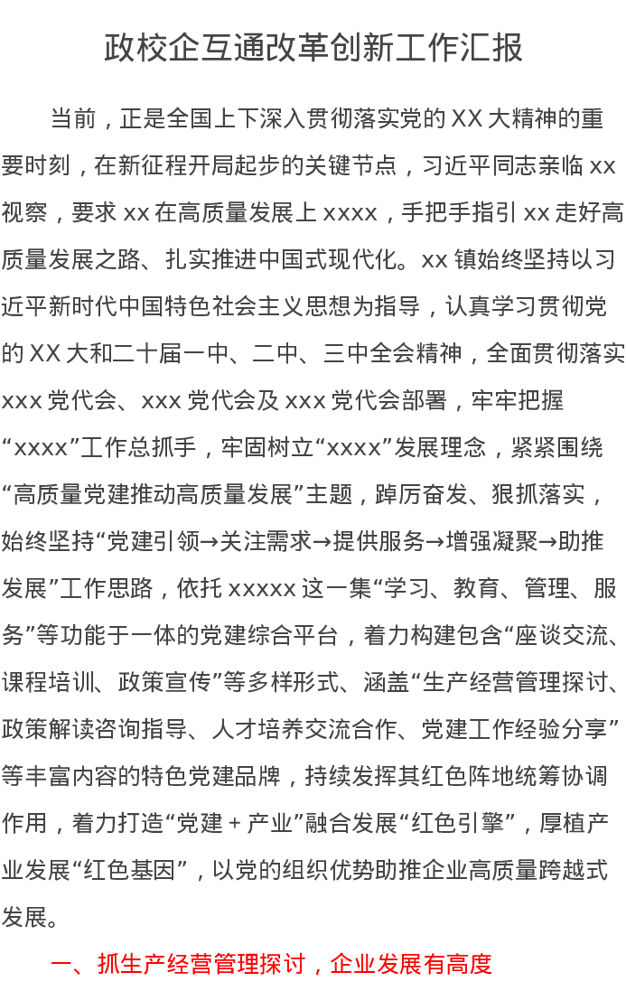 政校企互通改革创新工作汇报