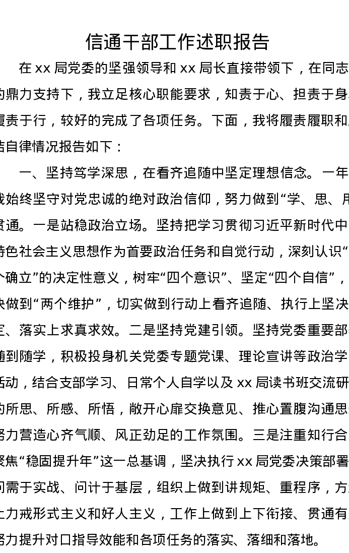 信通干部工作述职报告
