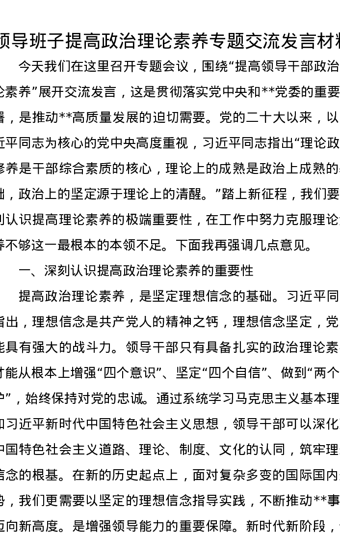 领导班子提高政治理论素养专题交流发言材料