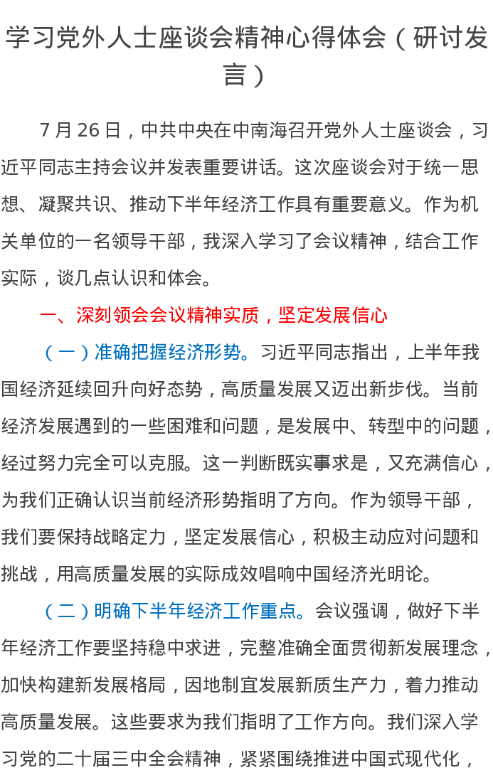 学习党外人士座谈会精神心得体会(研讨发言)