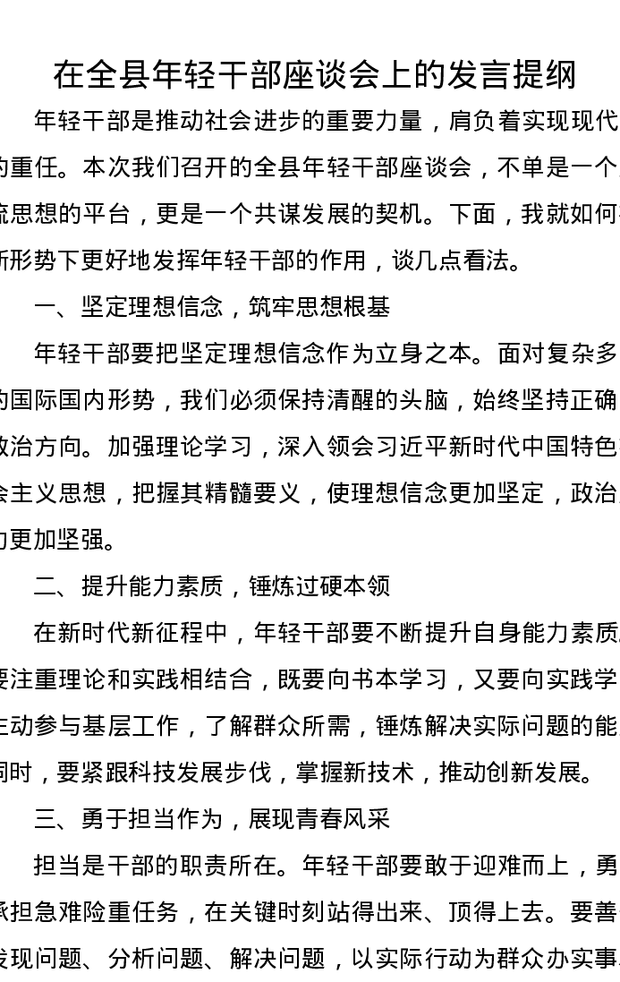 在全县年轻干部座谈会上的发言提纲