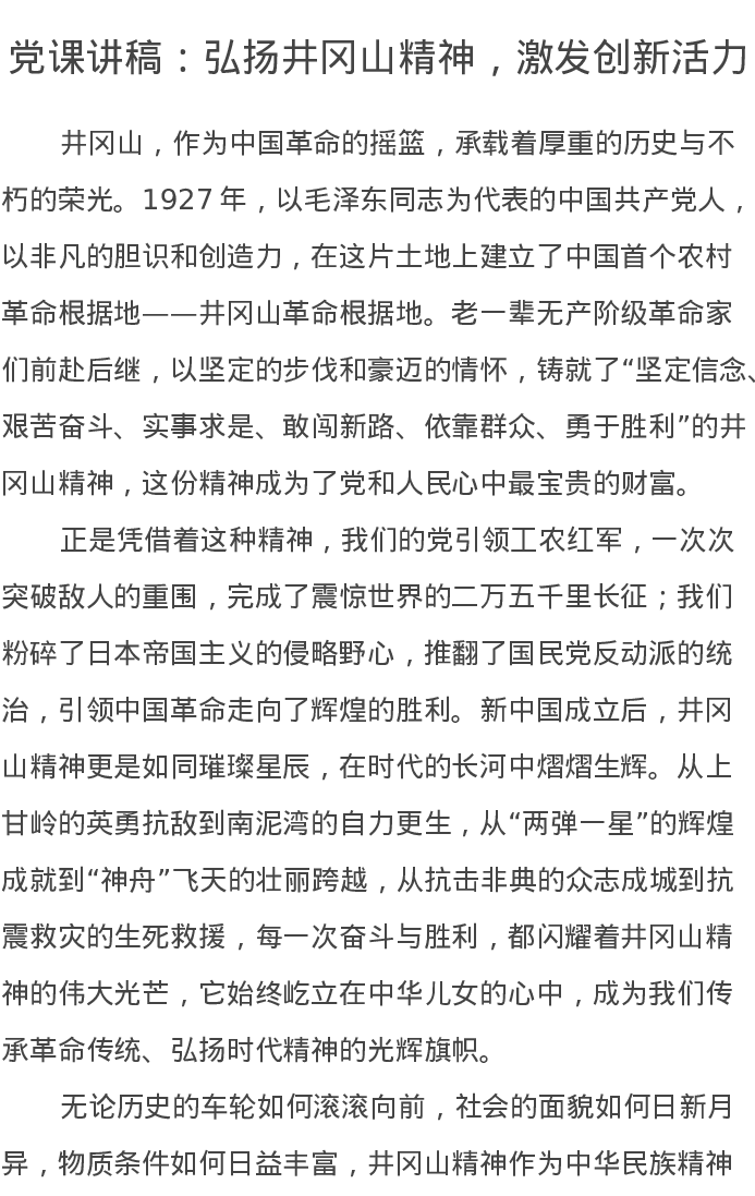 党课讲稿:弘扬井冈山精神,激发创新活力