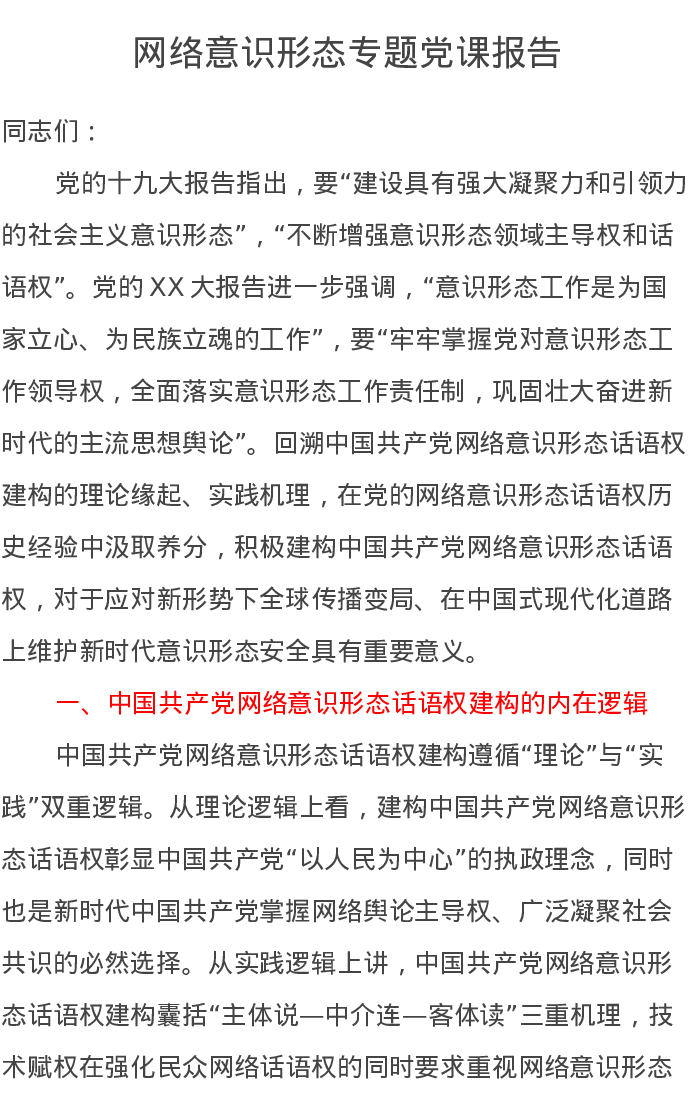 网络意识形态专题党课报告